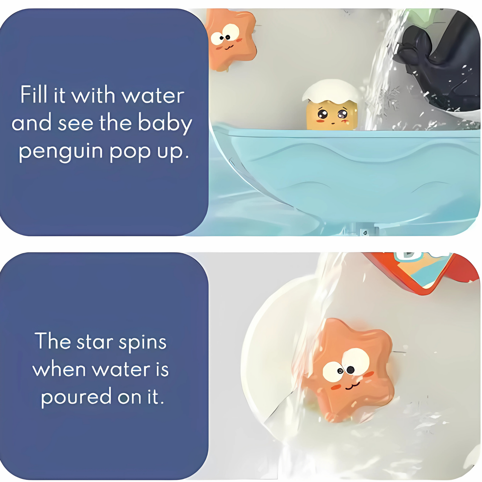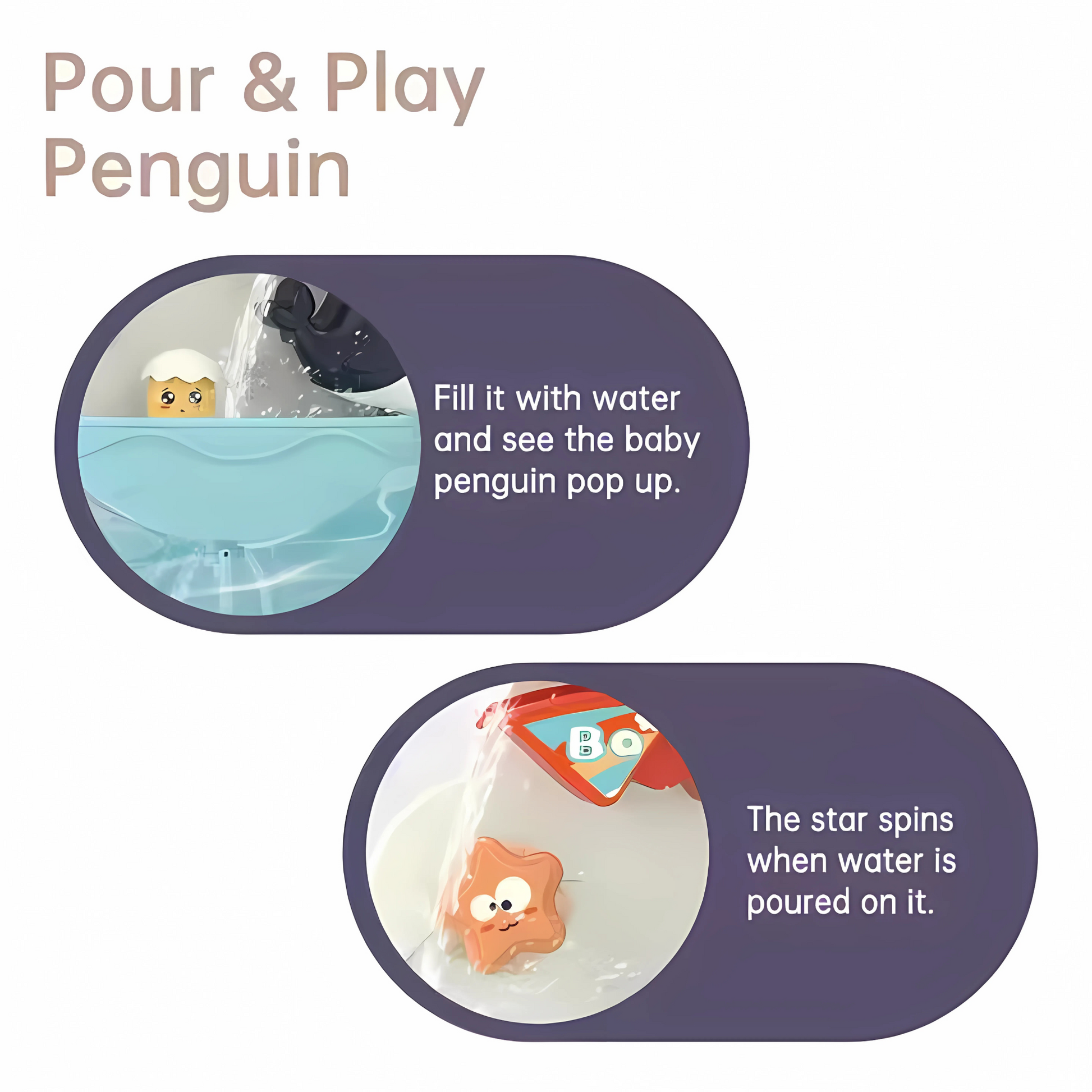 Turn your baby's bath time into an exciting water adventure with the Twisoo Animal Baby Bath Toy Set! This adorable bath set includes a cheerful Dolphin waterfall, fun spinning wheels, and charming sea animals that easily attach to the bathtub or bathroom wall with suction cups. Just pour water over the penguin’s head and watch as it flows down like a mini waterfall, spinning wheels and creating endless giggles. Designed with soft edges and baby-safe materials, it ensures fun and safety in every splash.